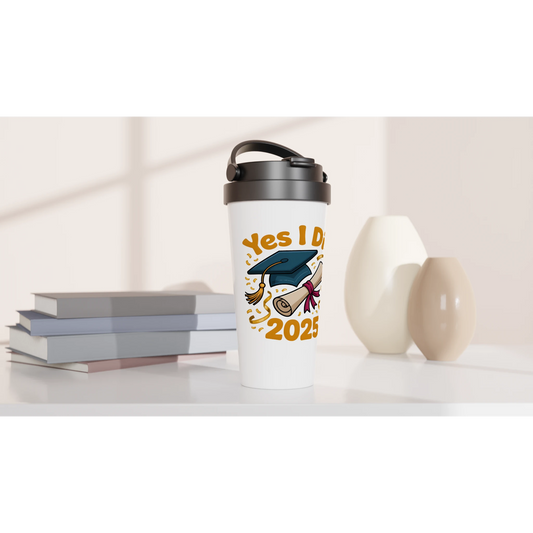 YES I DID White 15oz Stainless Steel Travel Mug-Graduation Mug