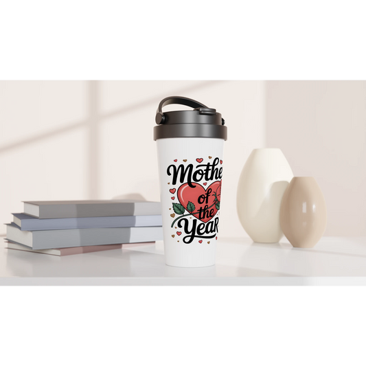 MOTHER OF THE YEAR White 15oz Stainless Steel Travel Mug - Gift For Mothers