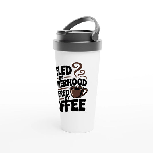 FUELED BY MOTHERHOOD White 15oz Stainless Steel Travel Mug-Gift For Mothers