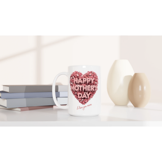 HAPPY MOTHER'S DAY Heart White 15oz Ceramic Mug - Gift For Mothers