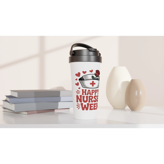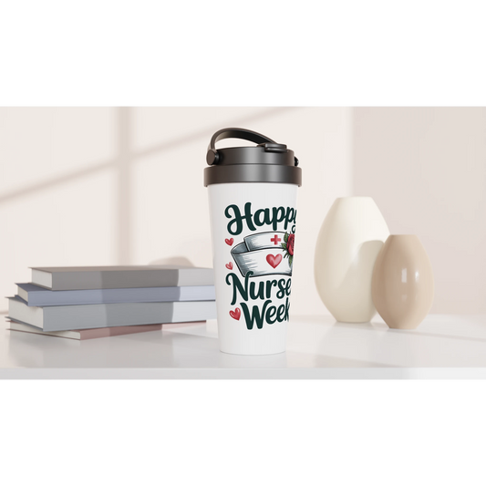 HAPPY NURSES WEEK Cap And Rose White 15oz Stainless Steel Travel Mug