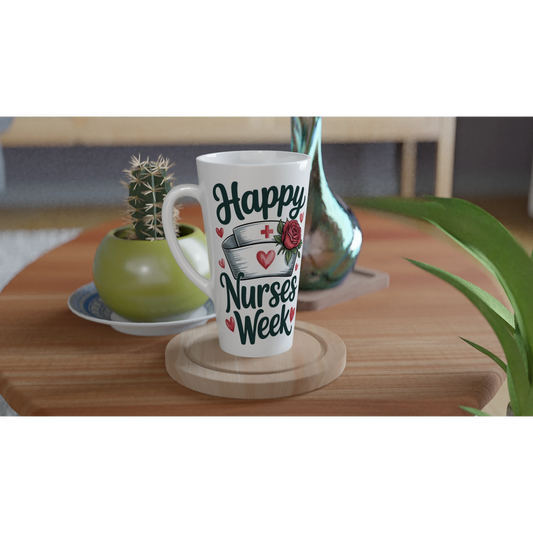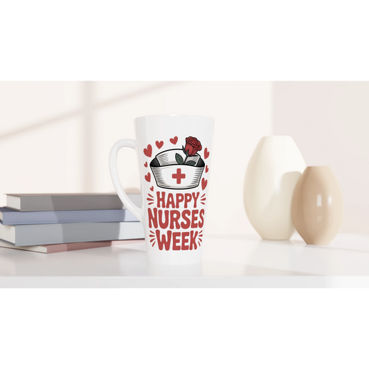 HAPPY NURSES WEEK Hearts White Latte 17oz Ceramic Mug - Gift For Nurses
