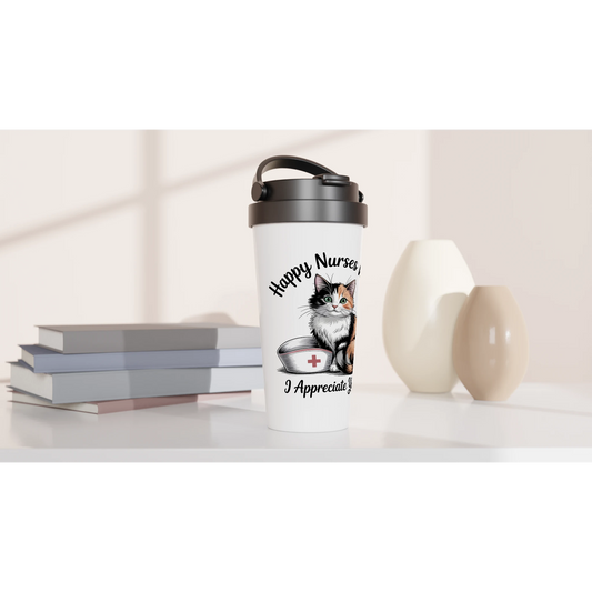 HAPPY NURSES WEEK I APPRECIATE YOU Cat White 15oz Stainless Steel Travel Mug