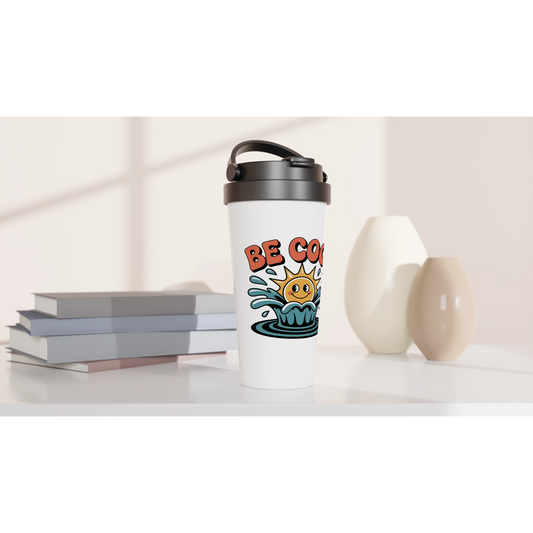 BE COOL White 15oz Stainless Steel Travel Mug, HOT or COLD Stainless Steel Mug