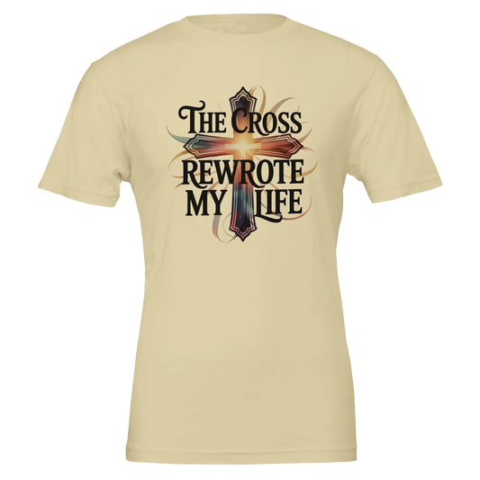 THE CROSS REWROTE MY LIFE Premium Unisex Crewneck T-shirt – Extra Soft Cotton Tee