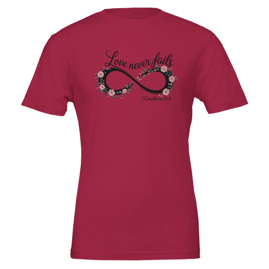 LOVE NEVER FAILS Premium Unisex Crewneck T-shirt