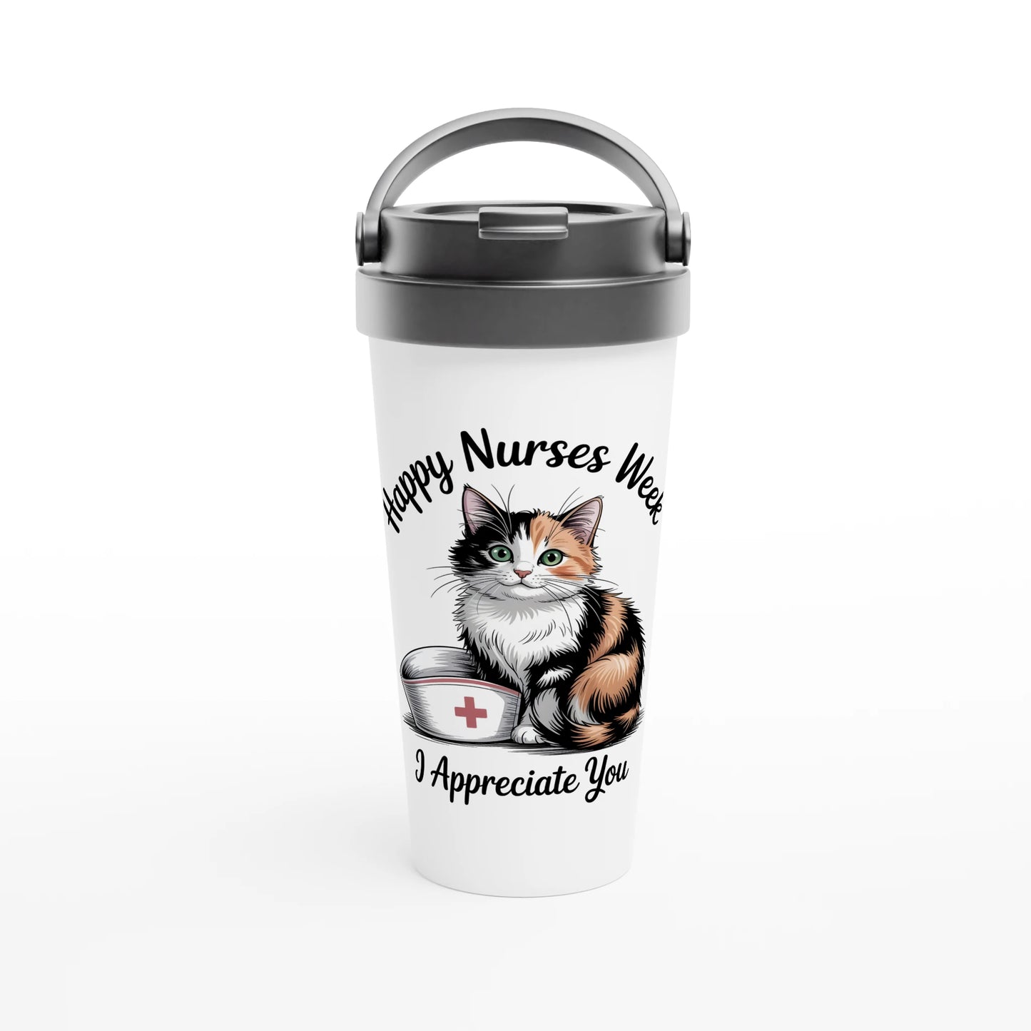 HAPPY NURSES WEEK I APPRECIATE YOU Cat White 15oz Stainless Steel Travel Mug