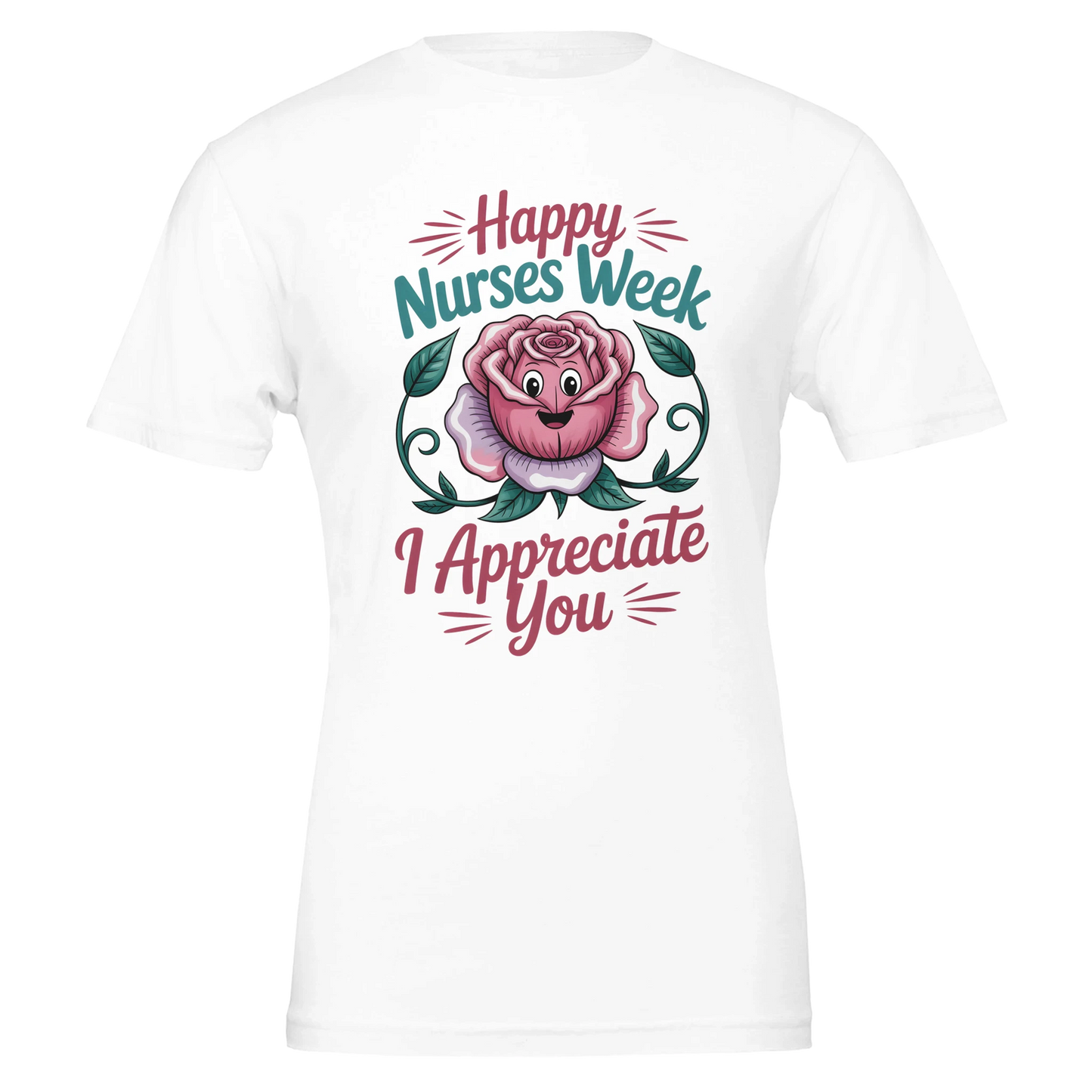 HAPPY NURSES WEEK SMILING FLOWER Premium Unisex Crewneck T-shirt – Luxury Soft Cotton Tee