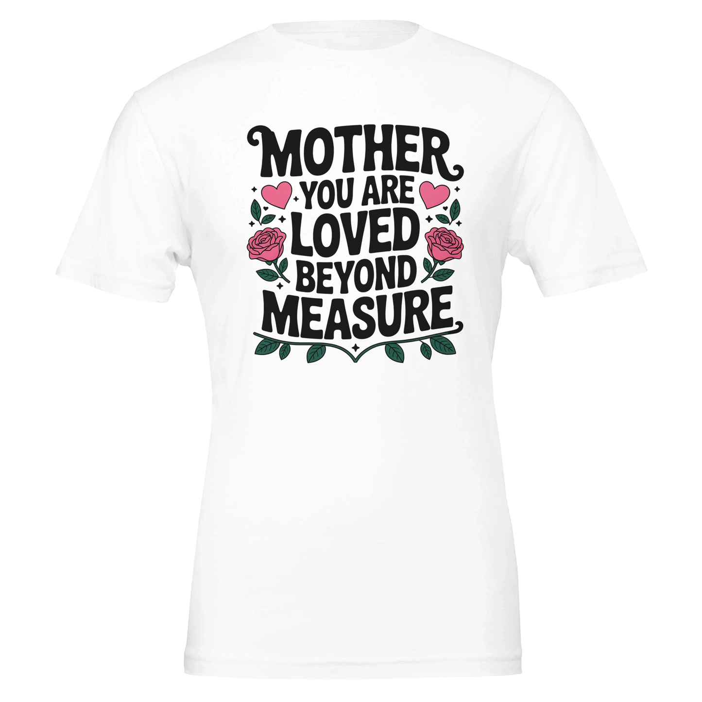 Celebrate the unconditional love of mothers with our beautifully designed t-shirt featuring the heartfelt message, Mother You Are Loved Beyond Measure, adorned with a floral motif. This t-shirt is a perfect gift that embodies appreciation and warmth for the special mom in your life.
